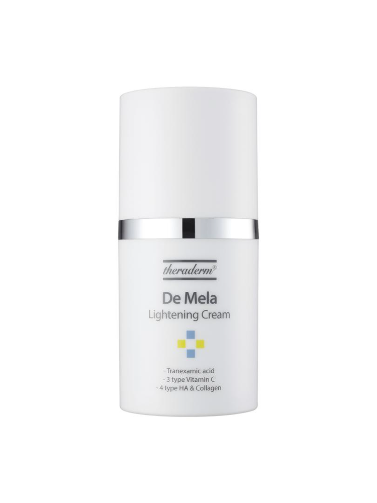 Theraderm Mela Lightning Cream is special bedoeld voor pigmentvlekken en een onregelmatige huidteint. De crème bevat tranexaminezuren die pigment doen oplichten en de aanmaak van pigment afremmen. Zo voorkomt het pigmentvlekken en andere tekens van huidveroudering zoals fijne lijntjes. Doordat de crème ook hyaluronzuur bevat zorgt het ook voor een goede hydratatie van de huid.